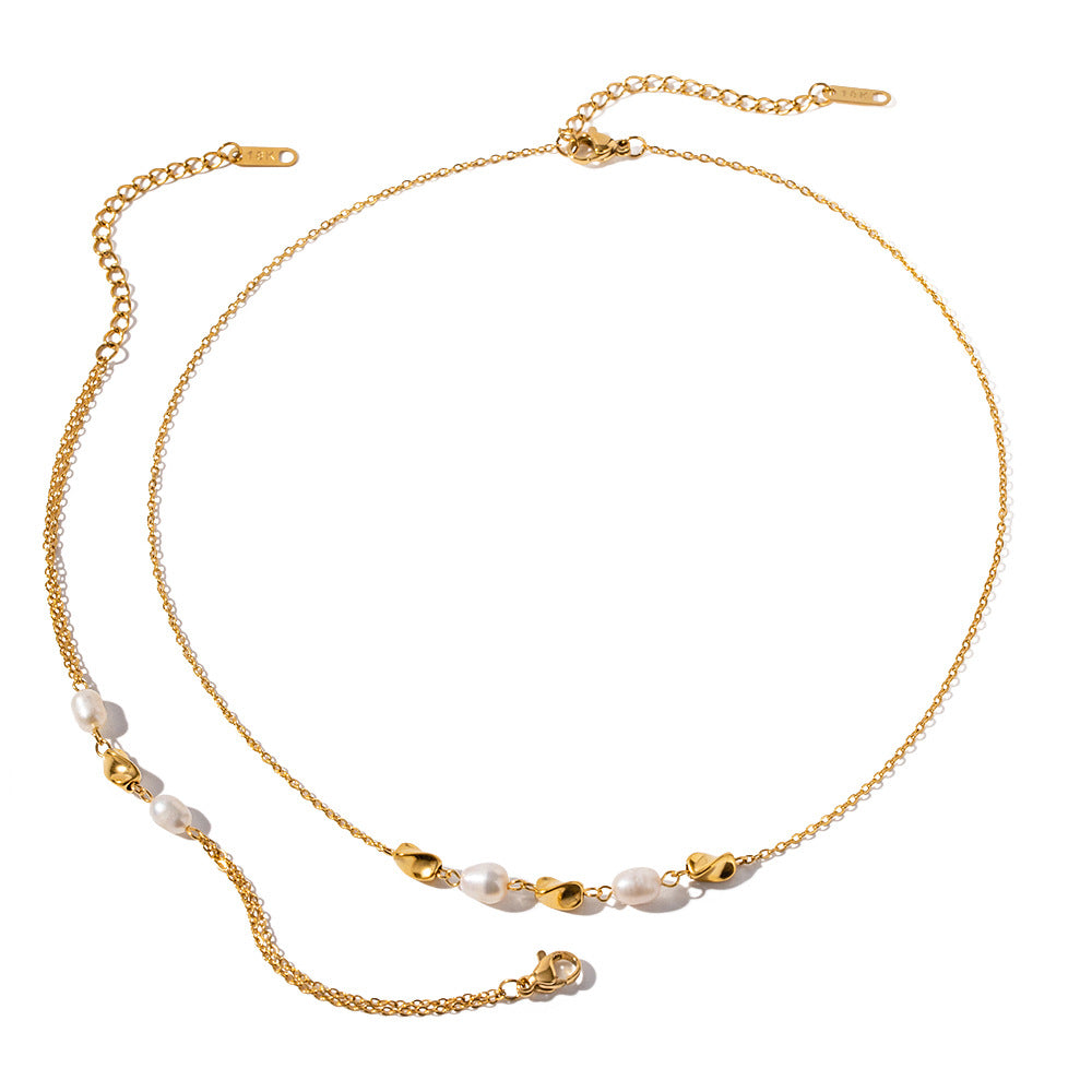 Fashion 18K Gold Stainless Steel Pearl Bracelet For Women